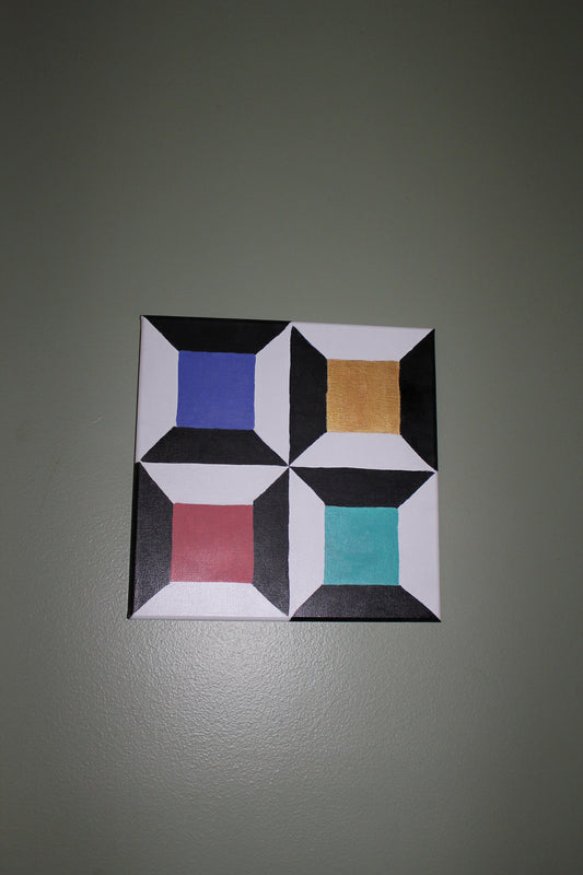 Spools of Thread Barn Quilt on Canvas FREE SHIPPING, Colorful Barn Quilt Wall Art, Painted 12x12 Canvas, Wall Barn Quilt, Metallic Wall Art