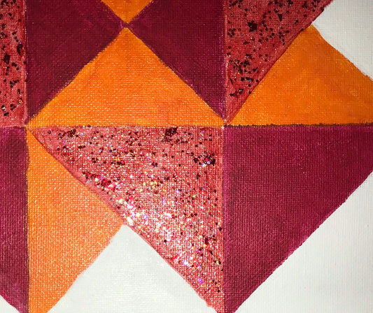 Card Trick Barn Quilt on Canvas, Red and Orange Barn Quilt, Glitter Wall Art, Quilt Block Wall Decor, Barn Quilt Canvas, Painted Quilt Block