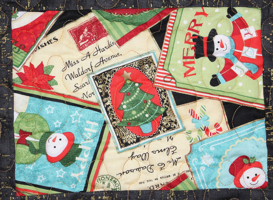 Snowman Quilted Mug Mat, Winter Candle Mat, Holiday Snack Mat, Handcrafted Placemat, Postcard Mug Rug, Kitchen coaster, Christmas gift decor