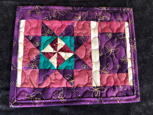 Pink and Purple Mug Mat, Handcrafted Snack Mat, Colorful Quilted Placemat, Quilt Block Mug Rug, Pink Coaster, Quilted Kitchen Tableware Gift
