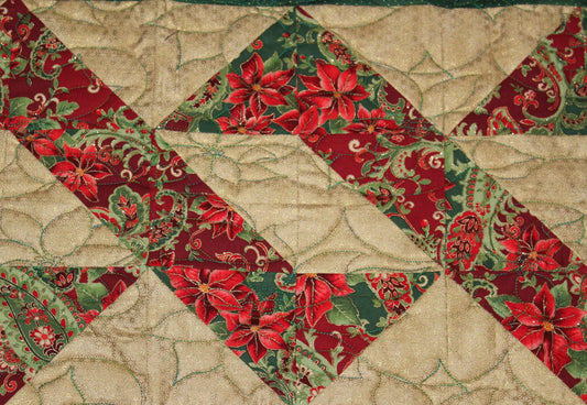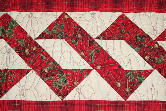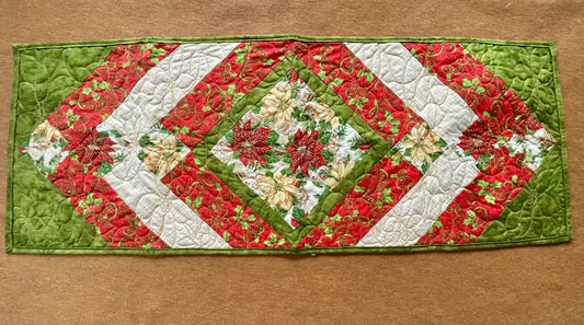 Christmas Poinsettia Table Runner, Holiday Quilted Runner, Holly Berry Table Cover, Christmas Mistletoe Tableware, Holiday Table Protector