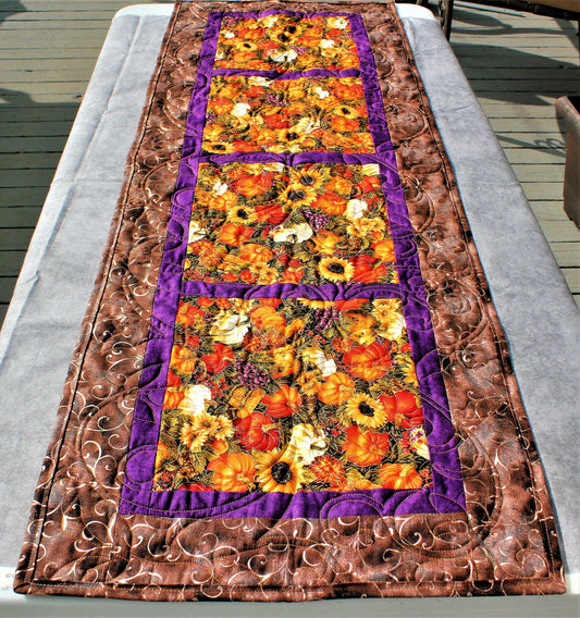 Thanksgiving Table Runner, Quilted Pieced Fall Pumpkins and Florals Table Topper, Harvest Flowers Table Mat, Handmade Autumn Runner Quilt