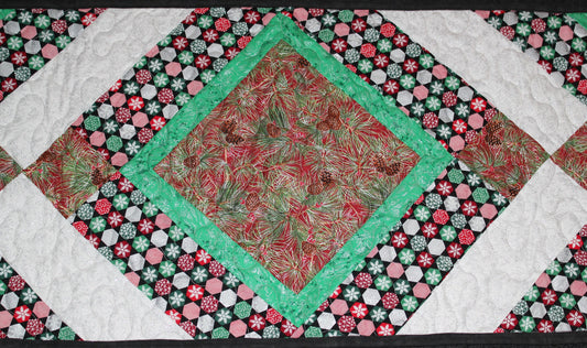 Pine Cone Table Runner, Holiday Glitter Quilted Runner, Winter Trees Table Cover, Red Gift Tableware, Snowflake Kitchen Table Protector