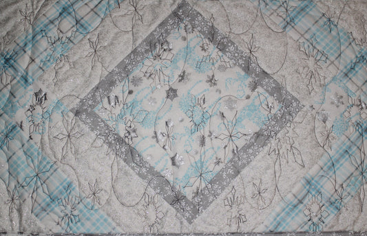 Snowflake Table Runner, Holiday Deer Quilted Runner, Winter Snow Table Cover, Silver and White Gift Tableware, Blue Kitchen Table Protector