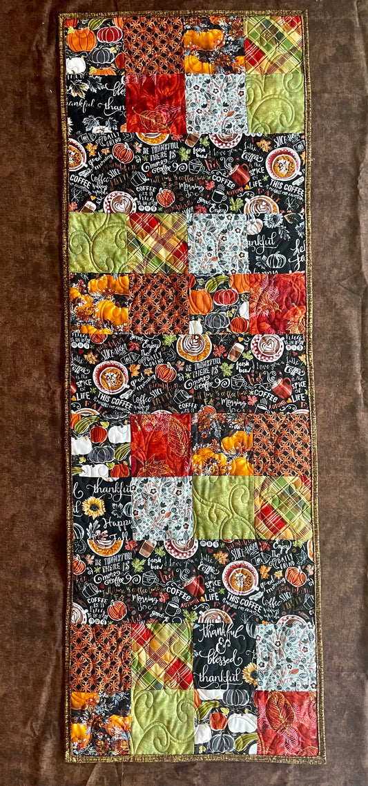 Pumpkin Spice Latte Quilted Table Runner, Coffee Table Topper, Fall Leaves Kitchen Decor Table Mat, Thanksgiving Pumpkin Fall Table Cover