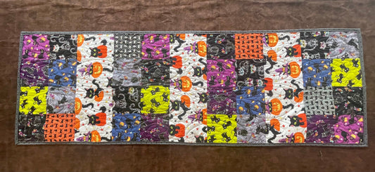 Halloween Black Cat Table Runner, Cute Halloween Decor, Cute Black Cats Table Runner, Halloween Modern Quilted Table Runner