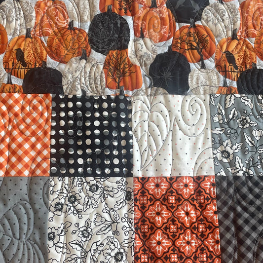 Fancy Pumpkins Halloween Table Runner, Ornate Pumpkin Halloween Decor, Black and Orange Table Runner, Halloween Modern Quilted Table Runner