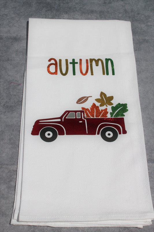 Fall Leaves and Red Truck Decorative Flour Sack Tea Towel
