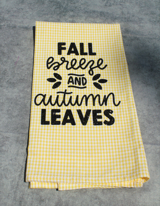 Fall Breeze and Autumn Leaves Tea Towel, Plaid Fall Towel, Autumn Kitchen Decor, Thanksgiving Towel, Harvest Decor, Farmhouse Hand Towel Set