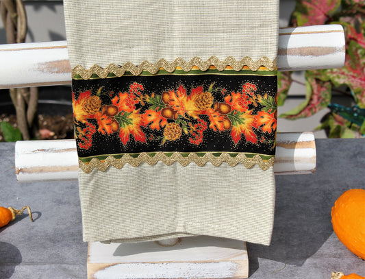 Fall Leaves and Acorns Tea Towel, Hanging Thanksgiving Towel, Autumn Dish Towel, Kitchen Towel, Bathroom Decorative Towel, Fall Leaf Decor