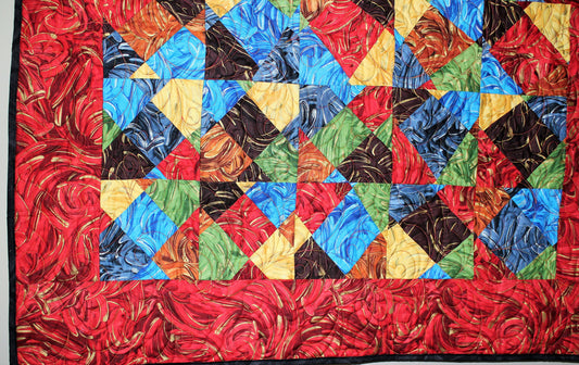 Color Splash Art Quilt Throw/Lap/Wall, Rainbow Quilted Lap Blanket, Colorful Throw Quilt, Adult Quilted Gift, Red and Blue Wall Hanging