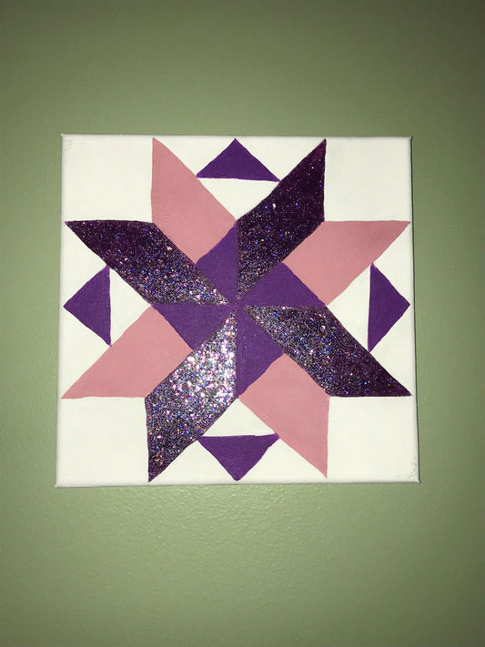 Pinwheel Barn Quilt on Canvas, Pink and Purple Barn Quilt, Painted Quilt Wall Art, Glitter Quilt Block Canvas, Quilt Wall Decor, Canvas Art