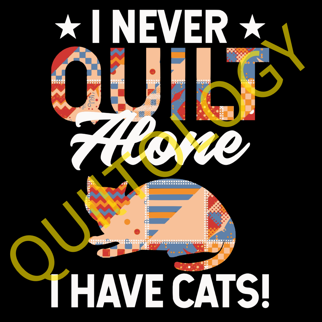 Embrace the crazy quilter in you with a silly graphic tee. This shirt reads "I never quilt alone I have cats" surrounding a cat made of quilt blocks. The design is applied using a high-quality DTF ink that stays vibrant no matter how you wash it.