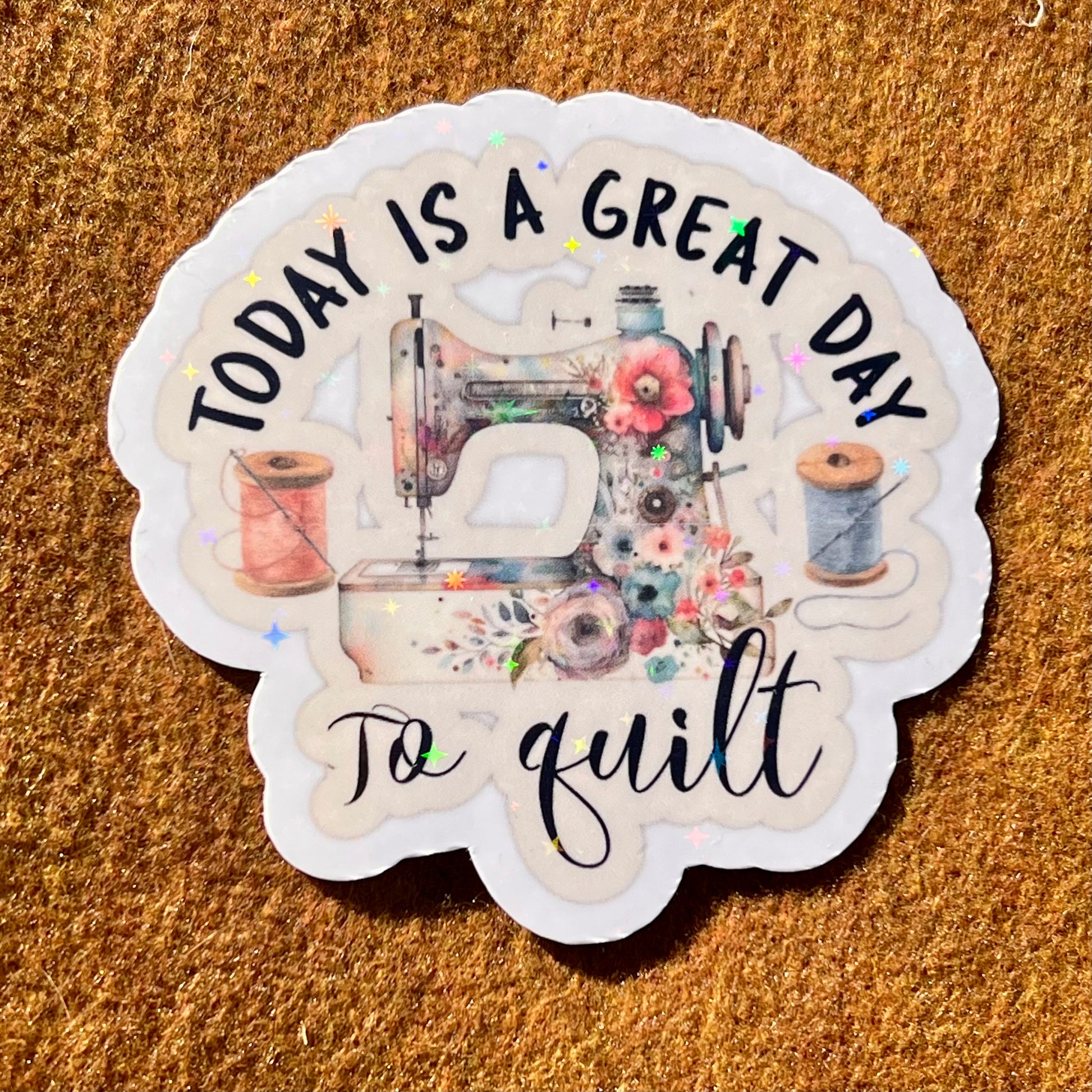 Let everyone know there is a quilter around with these adorable vinyl quilting stickers. The stickers are durable, waterproof, and ready to stick on the surface of your choice! Each sticker measures 3 inches on its longest side and has a holographic glitter topper. Glitter topper style will vary.